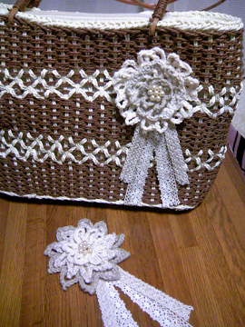 2ヶ月ほど前に作ったコサージュは、レースの紐を付けて完成。