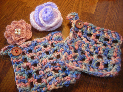 友達から手編みのコサージュとコースターを貰ったよ