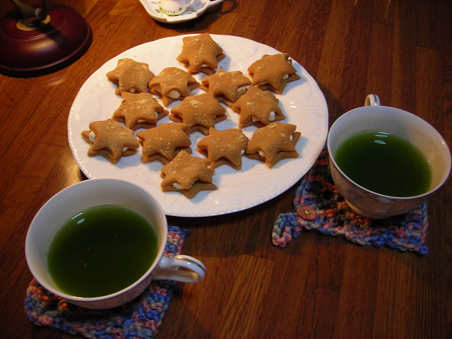八つ橋と一緒に、貰ったコースターで抹茶をいただいた。