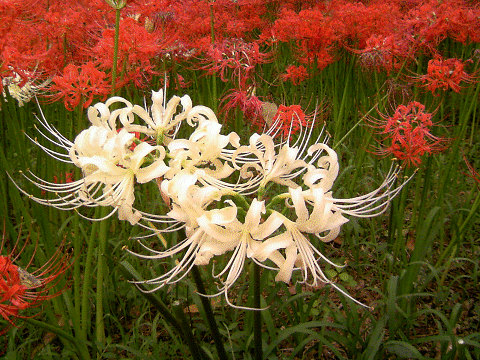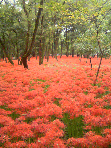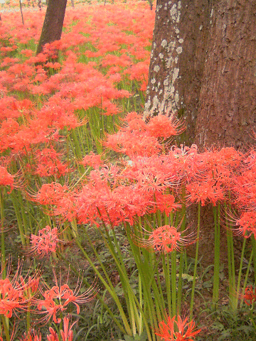 公園に向かう通り道も、ちらほらと曼珠沙華の赤に縁取られていました。