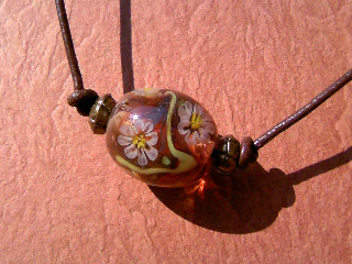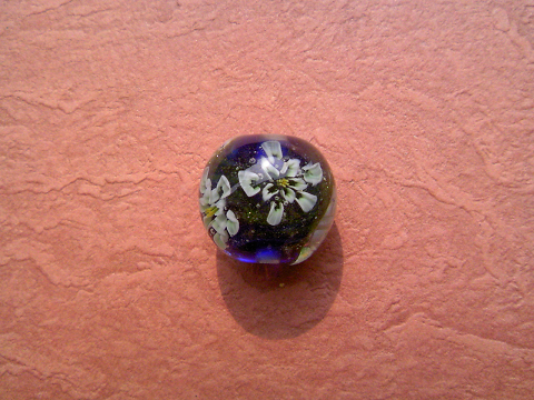 濃い青にキラキラ入りのガラスを巻いて、空想の花を咲かせました。