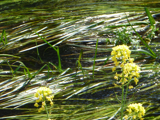 川岸に下りて見たら、藻が気持ちよさそうに水に揺らいでいたよ。