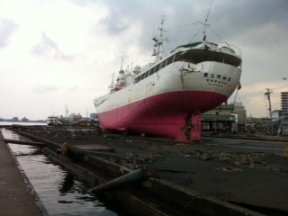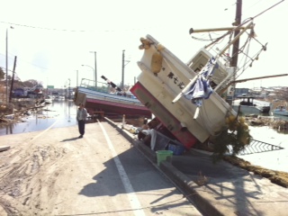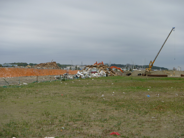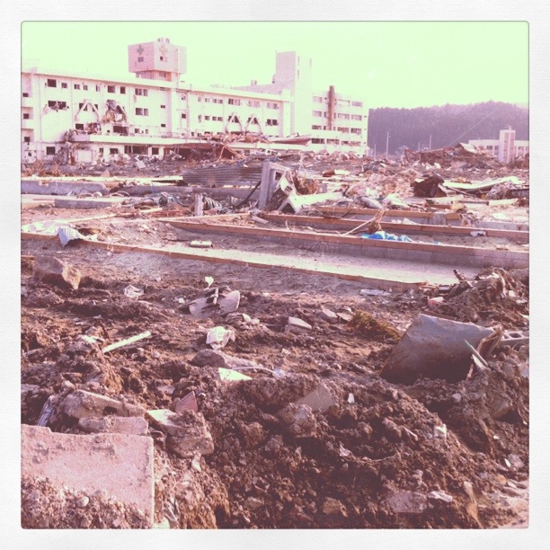 津波の被害で、ガレキの山。