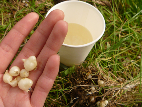 甘口の日本酒のおつまみには、生のノビルのピリ辛さがよく合いました。