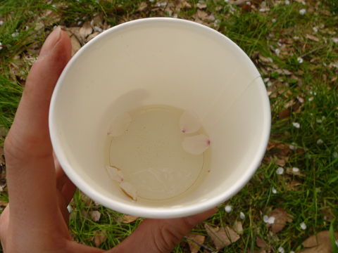 カップのお酒に花びらがヒラリと舞い落ちるシチュエーション。