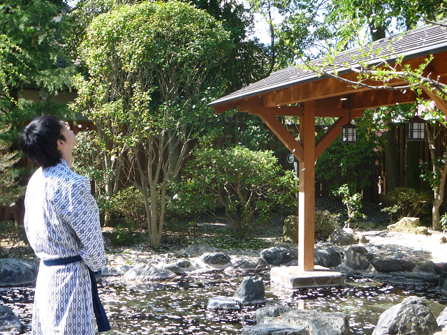 桜の花びらがヒラヒラ落ちてきて、湯船は一面桜色。