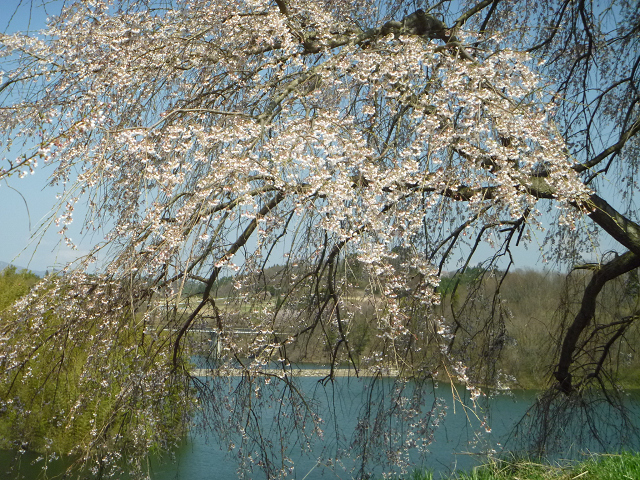 三春ダムにかかる枝垂桜。