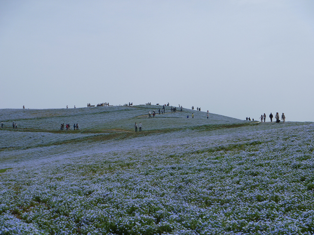 丘一面を、真っ青なかわいい花が埋め尽くしています。