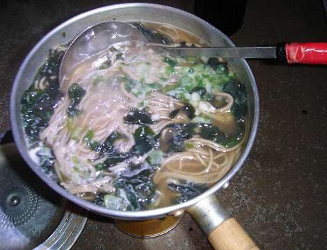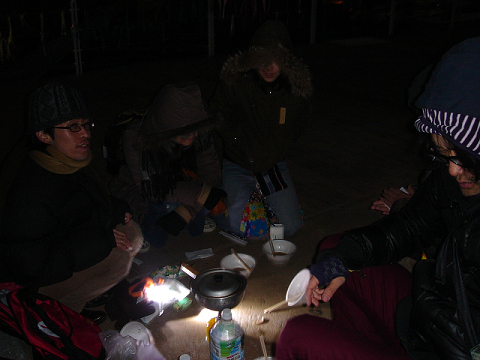 みんなでかじかむ手で、年越しそばを調理しました。