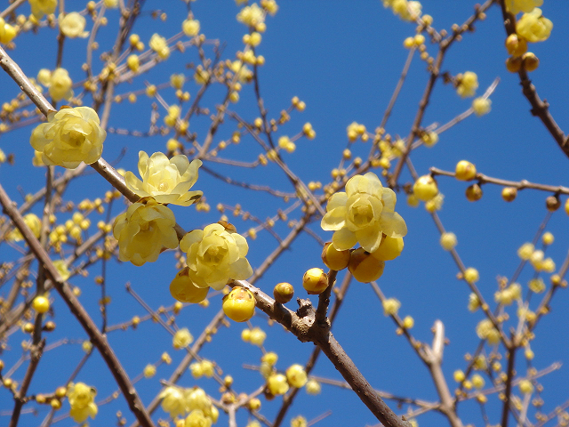 蝋細工みたいな光沢があるから、蝋梅って名前らしいです。