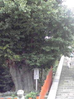 階段わきには樹齢1000年にもなる巨大なイチョウの樹が。