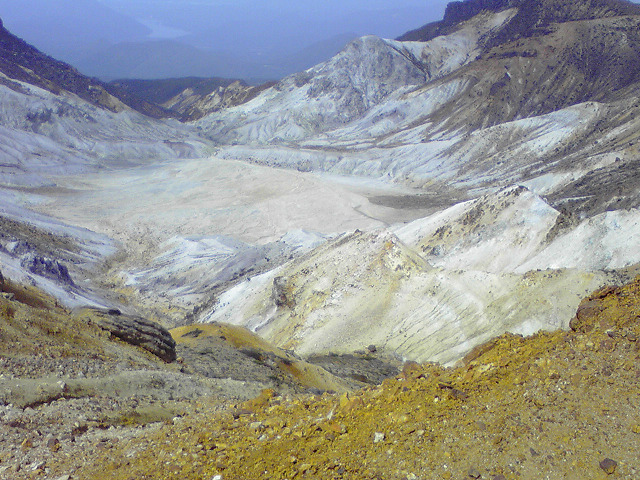この山は火山ガスが発生していて、このあたりも硫黄の匂いが強烈です。