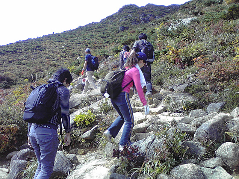 磐梯山と比べると、なだらかで歩きやすい山道です。