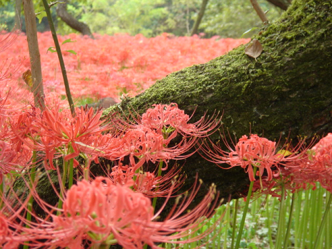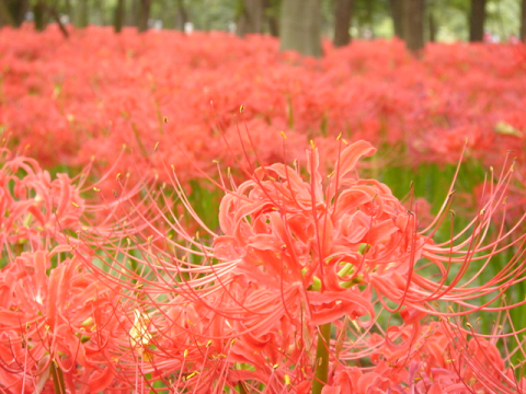 真っ赤な曼珠沙華がびっしり群生。