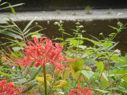 高麗川の岸辺に広がる曼珠沙華の群生地。