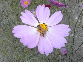 ところでコスモス畑にはミツバチがたくさん。