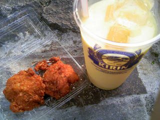右の写真はマンゴー・ラッシーと、ピアズ。