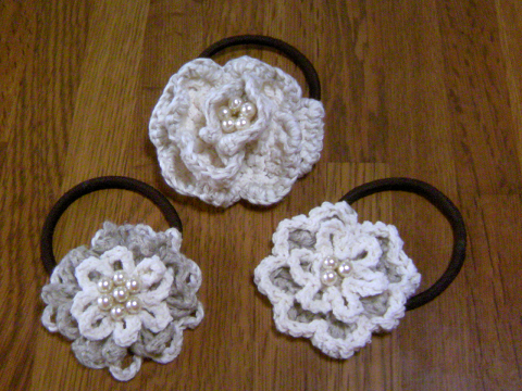 最近ではちっちゃいモチーフをヘアゴムにするのにハマッてます。