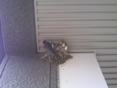 屋根裏に鳥が巣を作って雛を育ててます(笑)