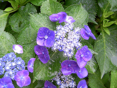 雨露をまとった可愛いあじさいの写真達。