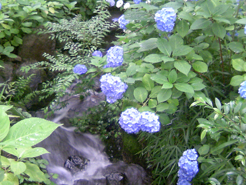 あじさいの中を水が流れている場所もあって