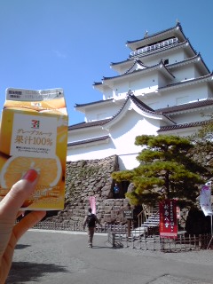 鶴ヶ城と、100パーセント・グレープフルーツジュースのコラボ。