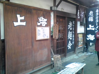 路地裏の古い店の一角、老舗のラーメン店って感じ。