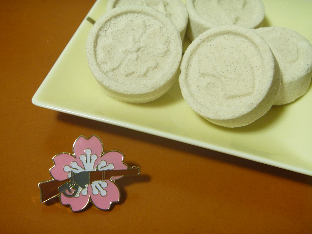 お土産の「そばらくがん」と「大河ドラマ記念ピンバッチ」