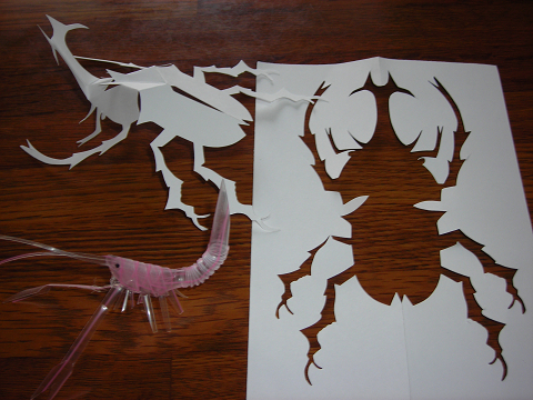 その後、カブトムシの切り絵を作ってみせてくれた。