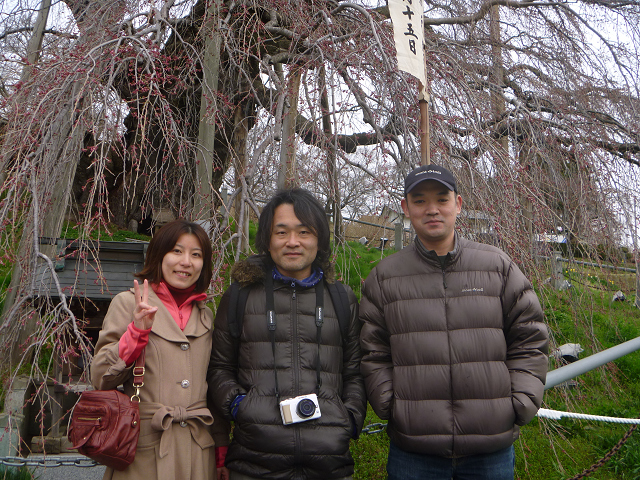 滝桜の前で記念撮影して、