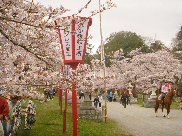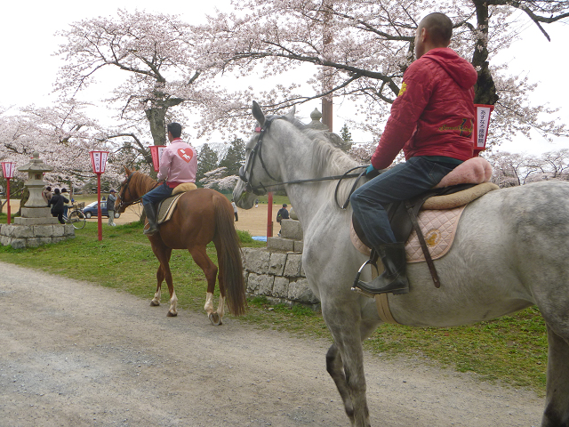 桜並木の中を2頭の馬が闊歩してました。