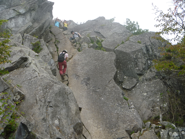 しかしこの先、頂上直下には高さ10mの鎖場「天狗岩」なるものが。